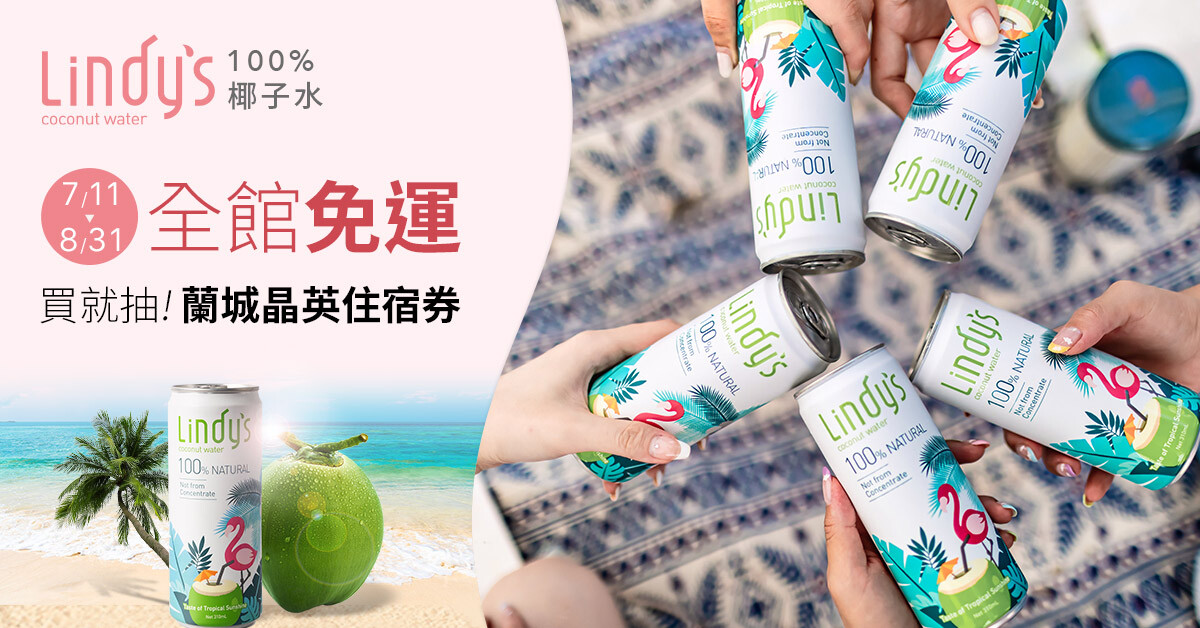 7月11日 ~ 8月31日,Lindy's 椰子水官方網站全品項限時免運!